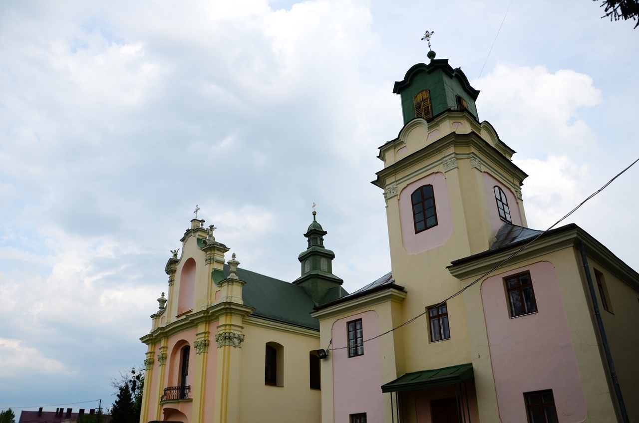 Костел заклав місцевий магнат Александр Зборовський у 1630 р. для черевичкових кармелітів. Первісна споруда згоріла внаслідок пожежі. У 1700 р. костел відбудували з дерева, а у 1736 р. розпочалося будівництво кам’яної будівлі, яке завершилося у 1753 р. Тогочасні бароково-рококові форми храму збереглися і донині. Внутрішні склепіння розмалював майстер Мартин Строінський. У 1886 р. його розписи були реставровані відомим українським іконописцем Теофілом Копистинським.