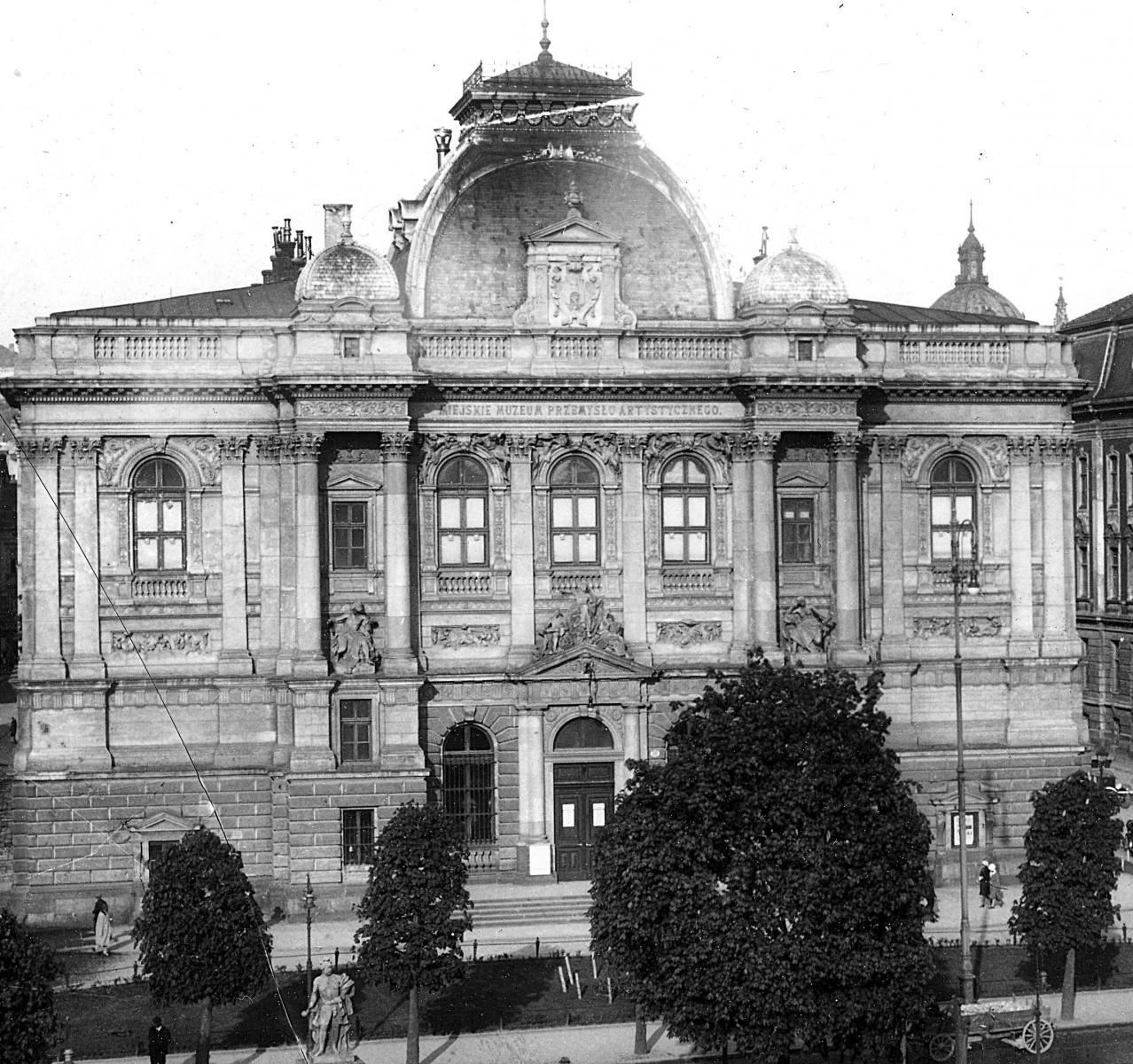 Біля театру в 1898–1904 роках збудували величний дім Промислового музею (пр. Свободи, 20). Його портал колись прикрашала скульптурна група А.Попеля “Освіта”, “Промисловість” і “Мистецтво”. Коли 1952 року в будинку відкрито Львівський філіал московського Центрального музею В.І.Лєніна, знищили майже все оздоблення фасаду. Не лише герб Королівського столичного міста Львова з коронами, але й статуї авторства А.Попеля, П.Війтовича біля входу та горельєфи Г.Кузневича – над вікнами. Алегоричні скульптури оголених жінок не пасували до образу творця більшовицької партії.