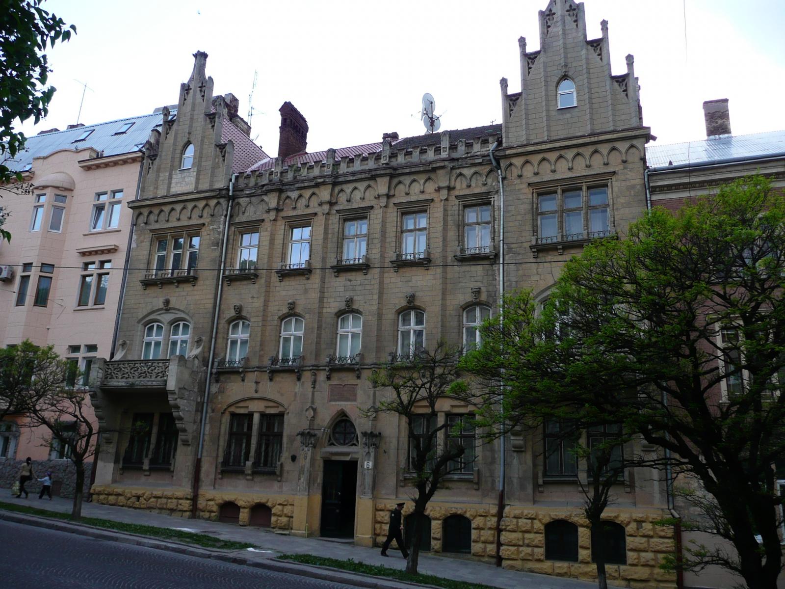 Варто заглянути і на вул. Героїв Небесної Сотні (колишню Гвардійську). Кам’яниця №6 на ній була збудована 1902 року (за власним проектом) Гіполітом Слівінським (1866–1932), архітектором і політиком. Її оздоблюють елементи готики та скульптури грифонів і сов, тому її називали «Кам’яницею під совами». Автором цього скульптурного декору, більшість з якого збереглася, був Антоній Попель. За майстерно зробленою неготичною брамою, з вітражем над нею, розташовані сіни, майстерно розмальовані в манері пізнього середньовіччя. Між готичних візерунків проглядають літери, якими, очевидно, зашифровано таємні тексти.