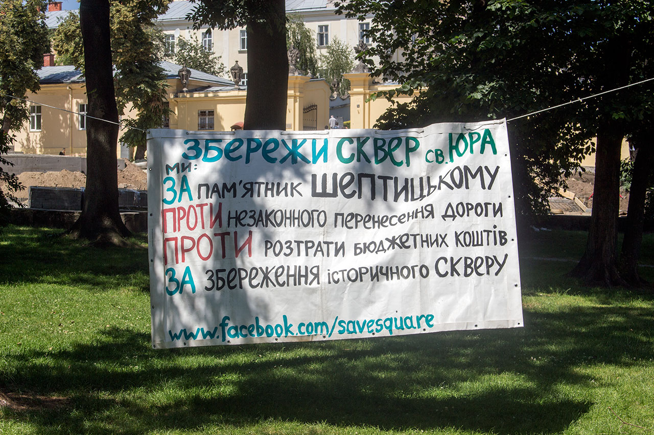 У Львові триває конфлікт між владою міста та громадськими активістами за збереження дерев у сквері Святого Юра. Концепція облаштування площі передбачає фактичне знищення скверу (зрубати у сквері наразі мають намір 34 дерева), що його запроектував міський садівничий, автор Стрийського парку Арнольд Рьорінг, а схвалив Андрей Шептицький. Сквер постав наприкінці XIX ст., а до того на цій площі двічі на рік проходили святоюрські ярмарки. Інтернет-спільноту обурив проект площі, вкритої гранітом, посередині якої — постать Шептицького.