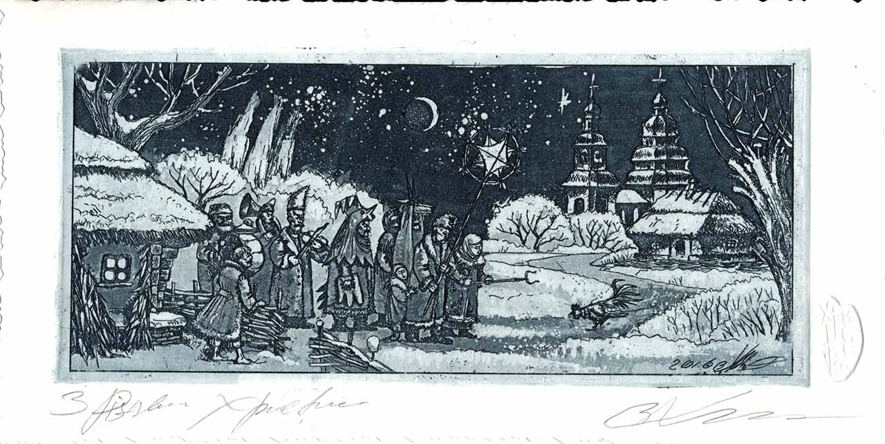 На виставці графіки Владислава Христенка «Різдво» представлено 46 творів у техніках класичного офорту у поєднанні із акватинтою та кольорового лінориту. Художник плідно працює у жанрі прикладної графіки, і тому значну частину експозиції займають його авторські художні листівки до Різдвяних та новорічних свят. Тут показані також і гравюри із серії «Козацькі хрести», в яких митець переосмислює в символічних образах історичне минуле українського народу. Унікальними є і великоформатні офортні аркуші-поліптихи із циклу «Твердині України», де відтворено найвидатніші давні замкові та фортифікаційні будівлі. У цих творах автор застосовує оригінальний художній задум, друкуючи невеликі сюжетні зображення із окремих офортних кліше на одній площині. Композиційно вони нагадують колаж або аплікацію.