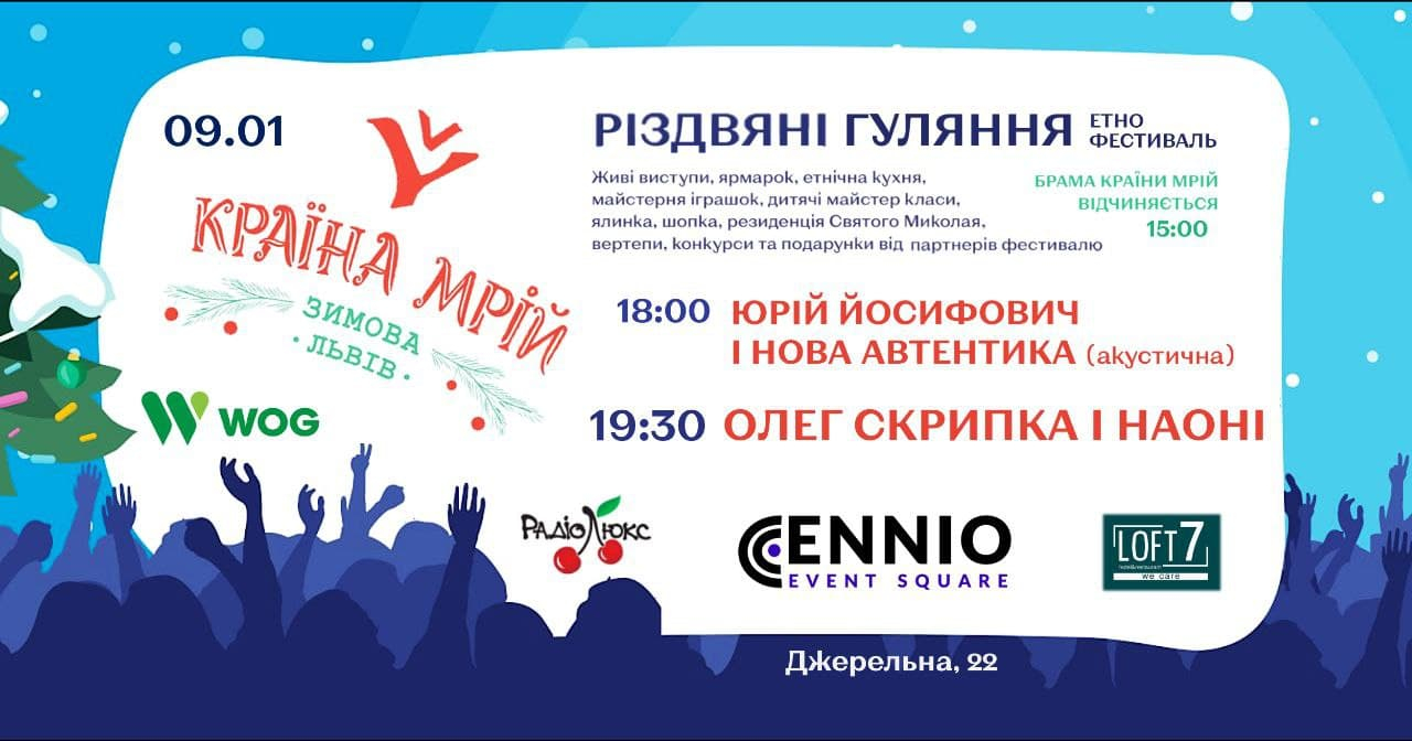 Також на Країні Мрій гості можуть відвідати майстер-класи, поринути у ярмаркове розмаїття автентичних виробів, вертепів, мистецьких майстерень та смачної етнічної кухні.