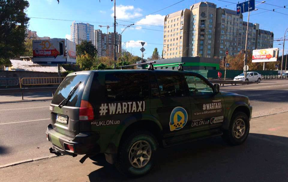 За кошти, зібрані під час акції «Військове таксі» у Києві, волонтери разом із сервісом виклику авто «UKLON» купили джип для 30ї окремої механізованої бригади збройних сил України. Цей джип «Військове таксі» #wartaxi невдовзі вирушить у АТО, але з 18 до 20 жовтня у львів’ян є можливість поїздити на ньому разом з волонтерами. Пасажири нестандартного таксі, а також всі, хто замовить таксі з тегом #wartaxi, допоможуть зібрати кошти на ще одну автівку для військових.