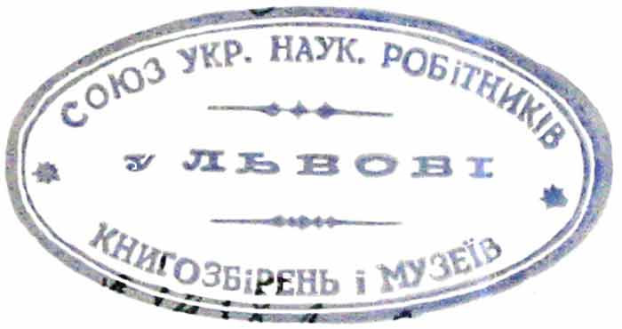 Легенда: СОЮЗ УКР. НАУК. РОБІТНИКІВ КНИГОЗБІРЕНЬ І МУЗЕЇВ У ЛЬВОВІ.