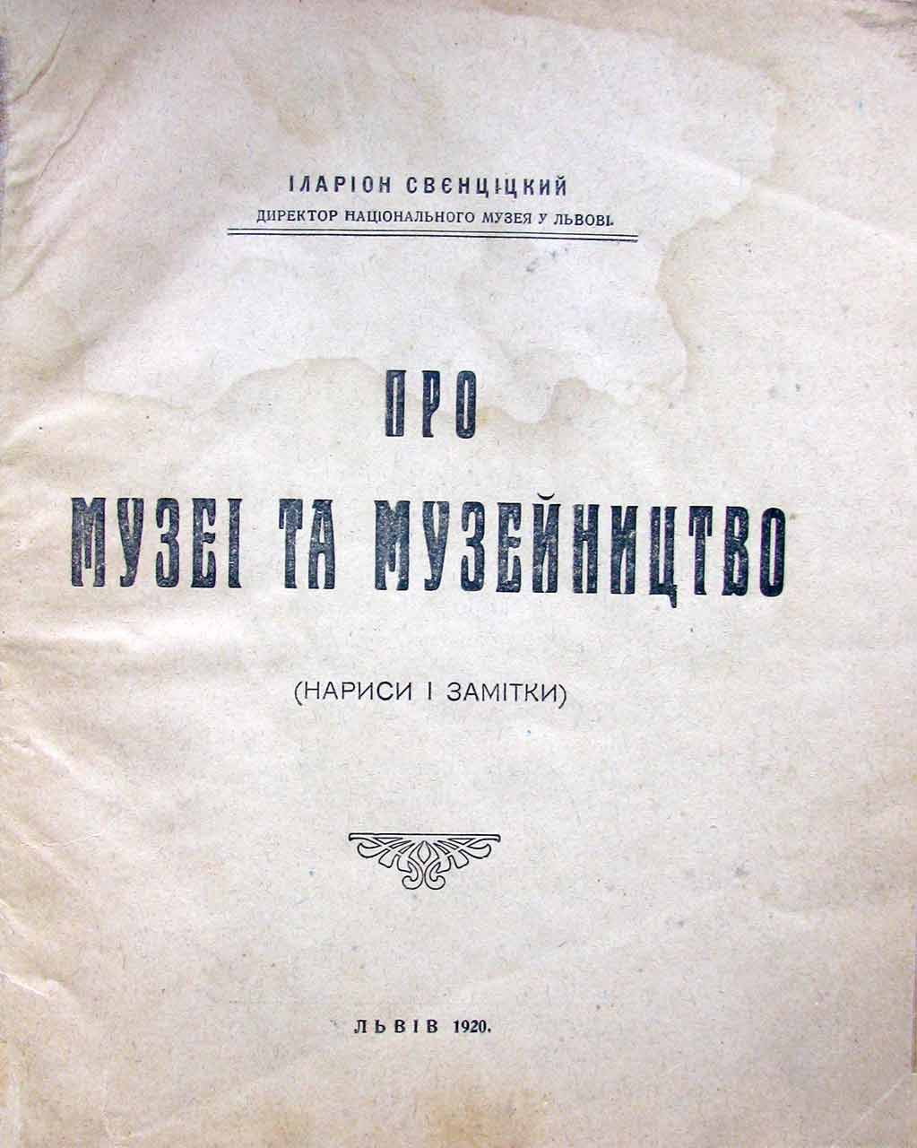 - Свєнціцкий І. Про музеї та музейництво (Нариси і замітки). — Львів, 1920. — 80 с.: іл.