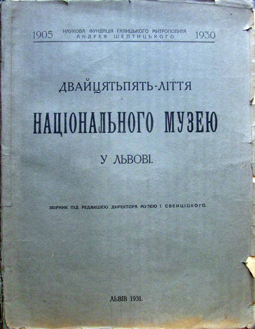 - Двайцятьпять-ліття Національного музею у Львові: Збірник / Під ред. дир. музею І. Свєнцікого. — Львів, 1930. — 124 с.: іл.