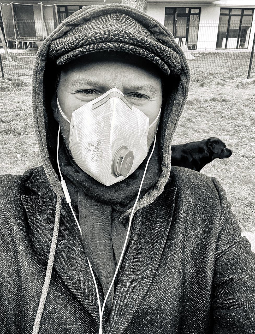 По можливості, стараюсь бути дома більше часу, добре, що там у мене є спортзал, часто відвідую. Коли гуляю з Деном (собака) у своєму районі то обов’язково з маскою. Іноді годинами «тринджу» з друзями по телефону з якими давно не зв’язувався чи не бачився, і які теж на карантині.