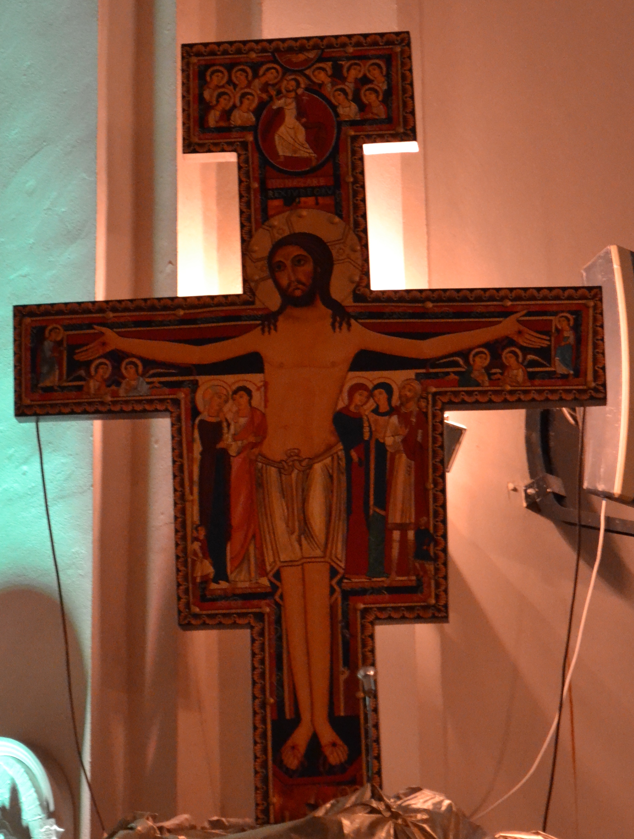 Франциск одягнув просту убогу одіж, підперезався шнурком і взявся власноруч за відбудову церкви. Жив він виключно на пожертви, а своєю убогістю хотів наслідувати Ісуса Христа.