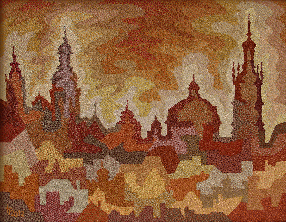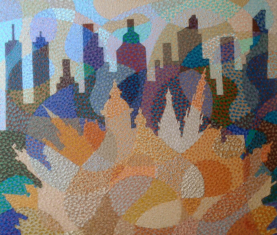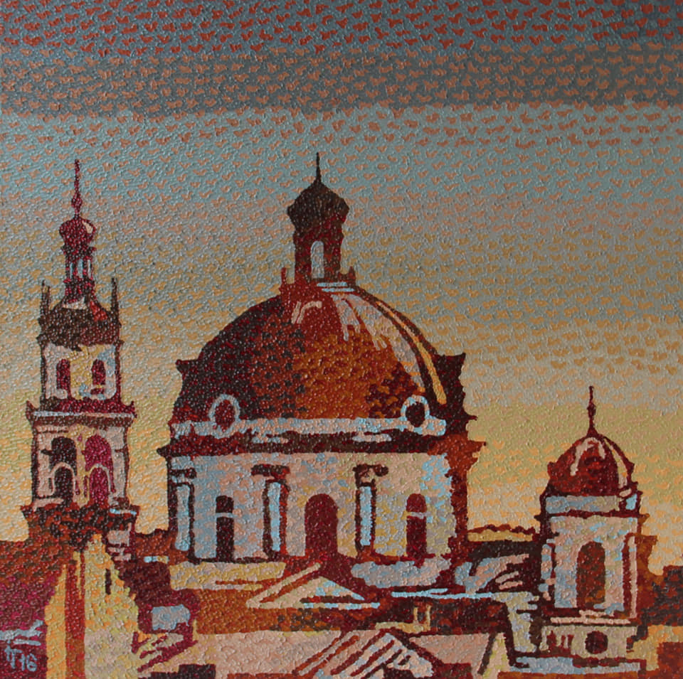 “Роботи мої створені у техніці пуантилізму. Позитив цієї техніки в тому, що є якась ніжність переходів. Наприклад, в мене площина може складатися з трьох-чотирьох кольорів: два з них можуть бути активні, а два – взагалі брудні. І брудні гасять ту активність і створюється зовсім інший колір, інше бачення”, – розповідає Ігор Теплий.