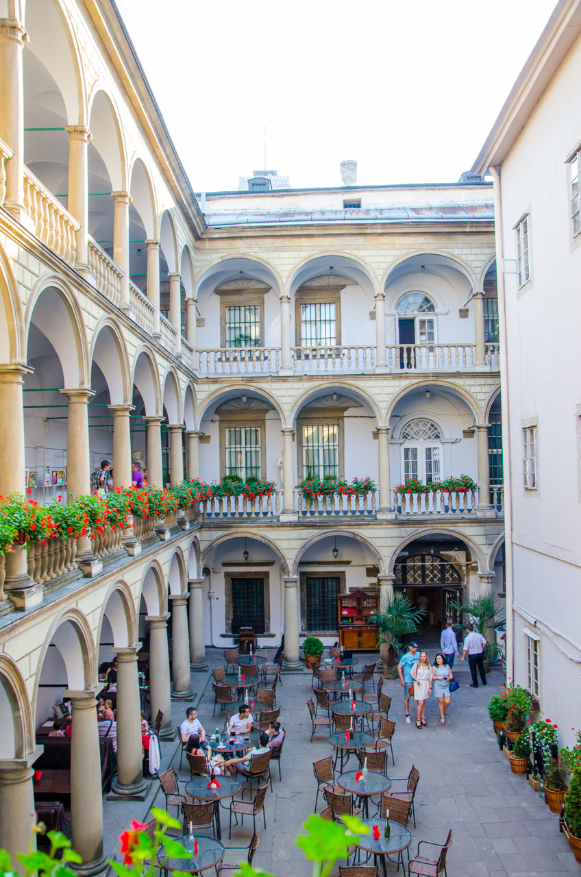 Кажуть, що тут можна почути шепіт закоханих. У цьому дворику, збудованому в XVI ст., берегли своє кохання польський король Ян Собеський та французька діва Марія Казміра.