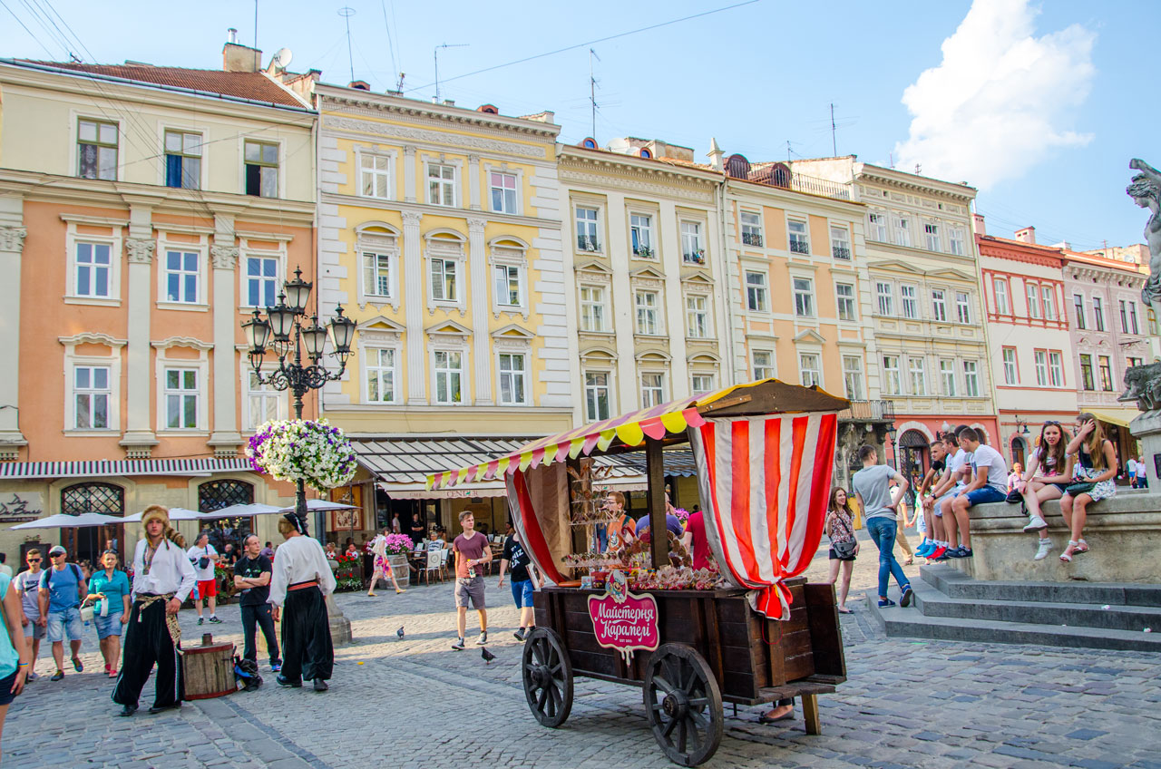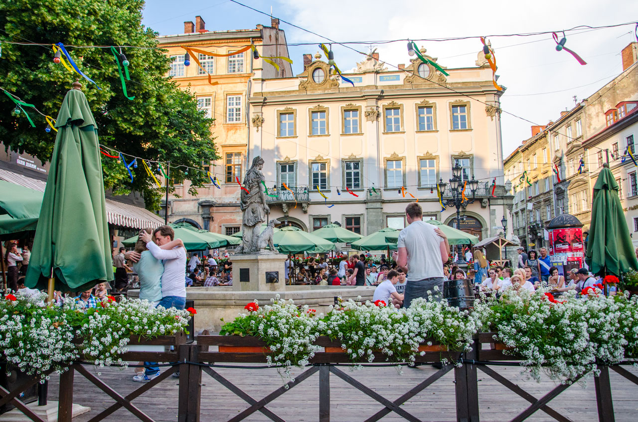 Незважаючи на галасливість та залюдненість найцентральнішої площі Львова, тут також можна відчути романтику. Влітку площа розцвітає різноманітними квітами – на ліхтарях, клумбах, кав’ярнях. Біля статуї Діани кожен може спробувати себе в ролі танцюриста, на танцмайданчику проходять танцювальні вечори просто неба. Разом з коханою людиною спробуйте відчути енергію сальси, танго чи рок’н’ролу.