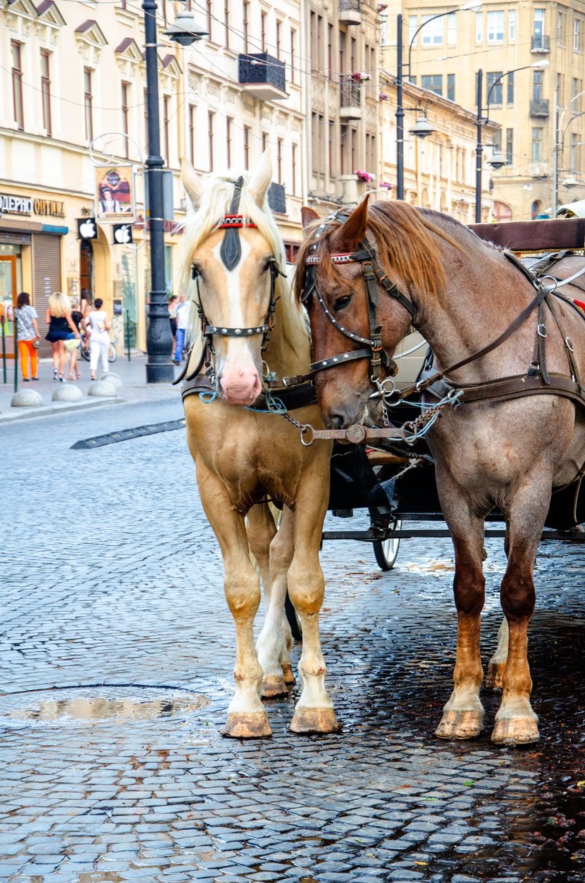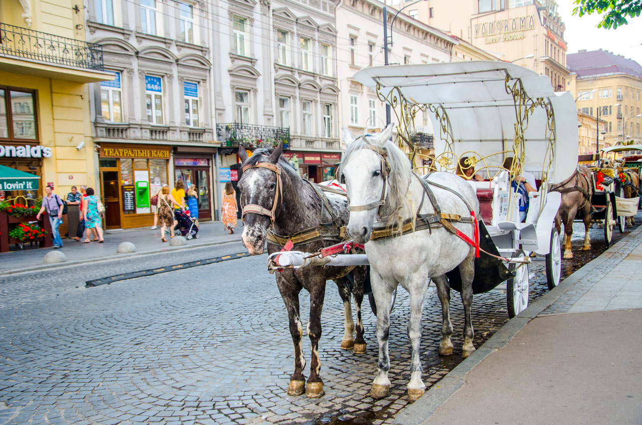 Щоб відчути себе жителем старовинного Львова, варто покататись на кареті з конями.