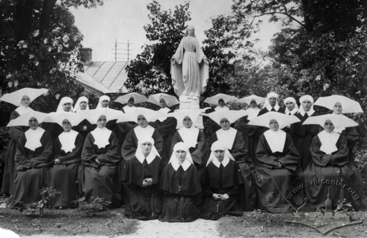 Маловідомою є скульптура Діви Марії, що стояла з 1895 року в саду свого будинку на вул. Солодовій, 10. У цьому будинку “Товариство терціарок Св. Франциска” утримувало Дім Опіки Св. Ядвіги, де опікувалися львівськими служницями, які не мали житла. Під час І світової війни в будинку був розташований шпиталь Червоного Хреста, де сестри провадили звичну для себе діяльність. Достеменно невідомо коли саме скульптура Богородиці була втрачена. Найімовірніше це сталося або в міжвоєнний період, або ж з приходом радянської влади.