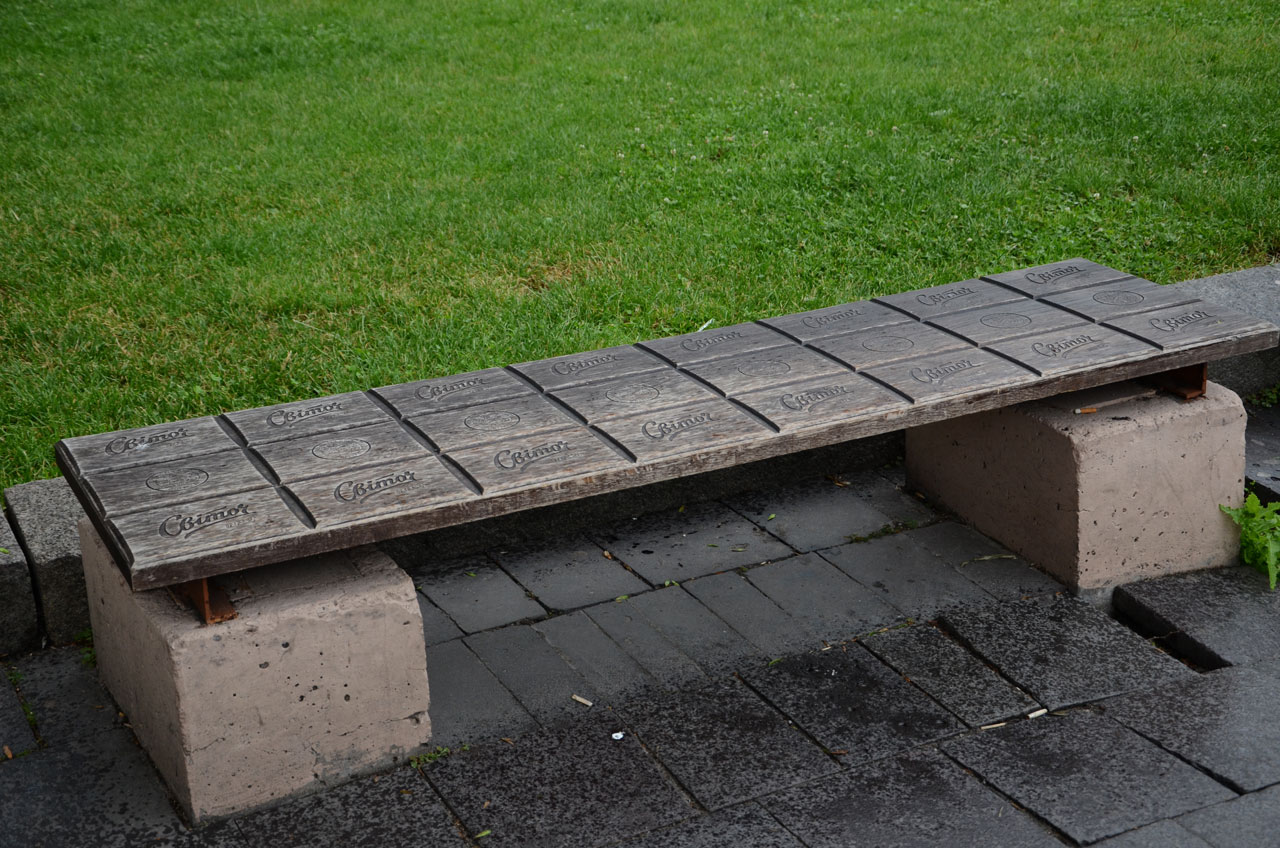Львів, як найшоколадніше українське місто, мусило мати відповіді лавочки. Величезні плитки шоколаду слугують місцями для сидіння, при чому, сидячи на них, можна не хвилюватись, про забруднення одягу солодощами. Користуються ними переважно студенти, адже розташовані ці лавки біля університету.