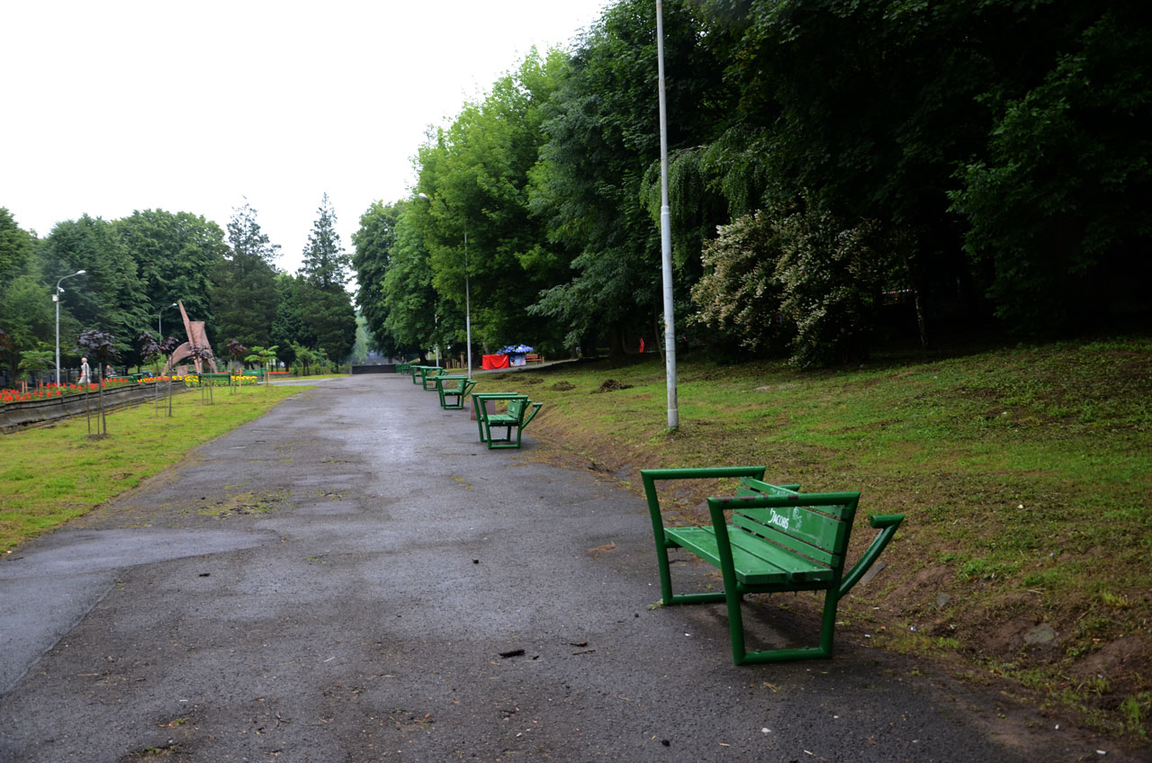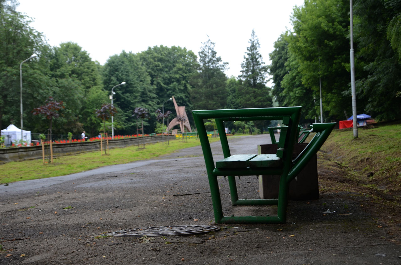 І куди ж без кави? Лавки у формі горняток кави чекають на тих, хто хоче перепочити у згадуваному вже Парку культури.