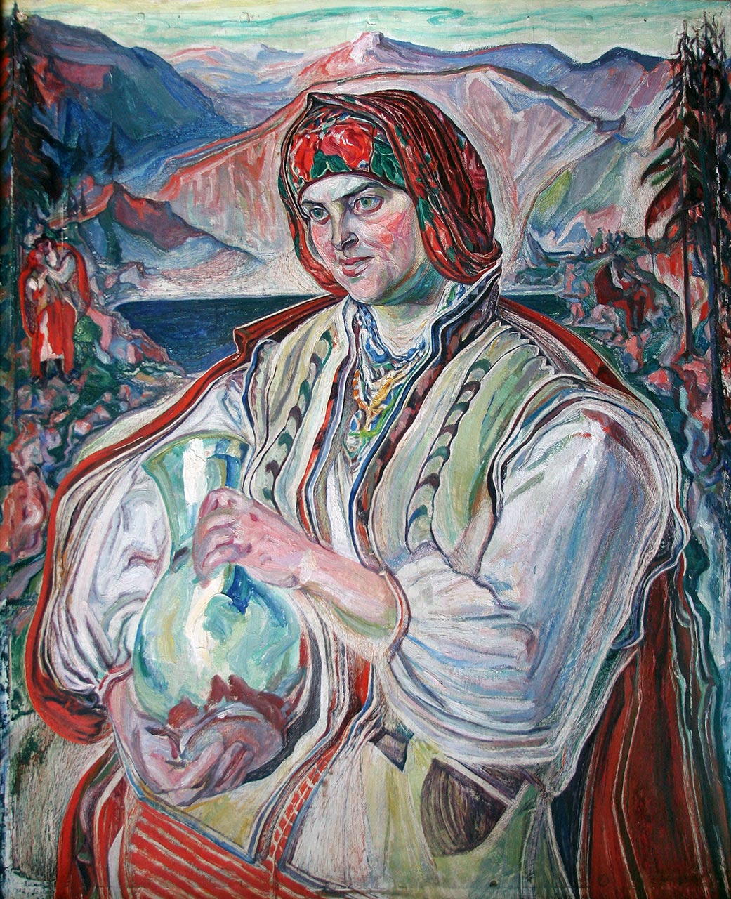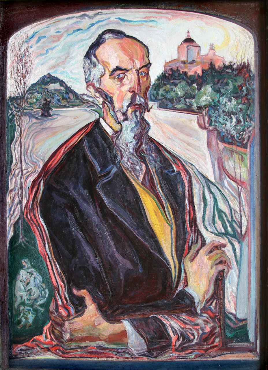Окрім того, краєвиди як невід’ємна частина романтичних портретів пензля Олекси Новаківського не лише є звичайним тлом та окрасою для зображення портретованих, а й мають символічний підтекст. О. Новаківський не раз портретував рідних і знайомих, легендарних та історичних осіб, відомих громадських і політичних діячів, представників творчої інтелігенції. У ранніх композиціях він віртуозно відтворив індивідуальні риси та психологічний стан своїх моделей, а в портретах зрілого періоду творчості поєднав експресивність із багатим символічним наповненням. За допомогою пейзажного тла, кольору та світла художник характеризував портретованого й окреслював його роль у суспільному просторі, розкриваючи внутрішній світ і діяльність зображуваної особи та своє ставлення до неї. О. Новаківський виконав кілька малярських і графічних портретів українського консервативного політика, історика та педагога О. Барвінського. Один із варіантів живописного портрета цього громадсько-політичного діяча Галичини надійшов до збірки НМЛ 1940 року з Музею НТШ. Ще один портрет О. Барвінського, який як плату за оренду житла та майстерні в музейному будинку в 1934 році передав до НМЛ автор, 1952 року було вилучено з фондового зібрання до «спецфонду» і знищено.