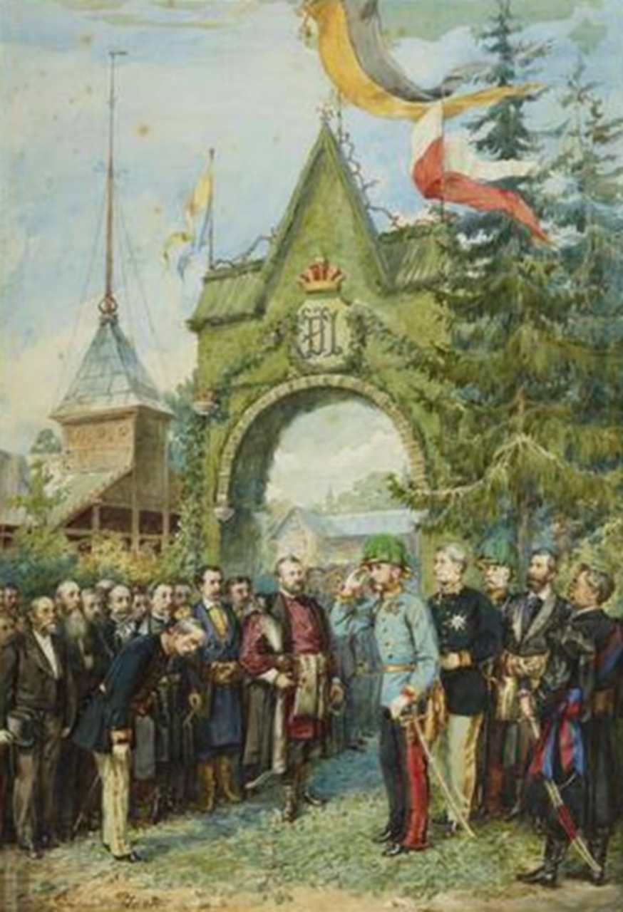 Однак, окрему шану Францу Йосифу вирішила віддати Крайова лісна школа, що розташовувалась тоді на вулиця Святого Марка (тепер вул. Кобилянської). Представники школи, маючи в своєму розпорядженні деревину та вміння нею розпоряджатись, звели при в’їзній брамі до школи дерев’яну одноарочну тріумфальну арку. Цікавою є картина Анжея Грабовського, на котрій зображено візит імператора до лісної школи. На цій картині помітно прапори, що майорять на тріумфальній арці, і один з цих прапорів має жовто-блакитне забарвлення.