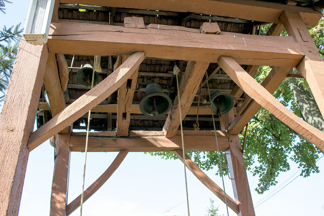 Зі сходу від церкви стоїть дерев’яна каркасна дзвіниця, накрита двосхилим дашком, а неподалік неї – дерев’яна каплиця.