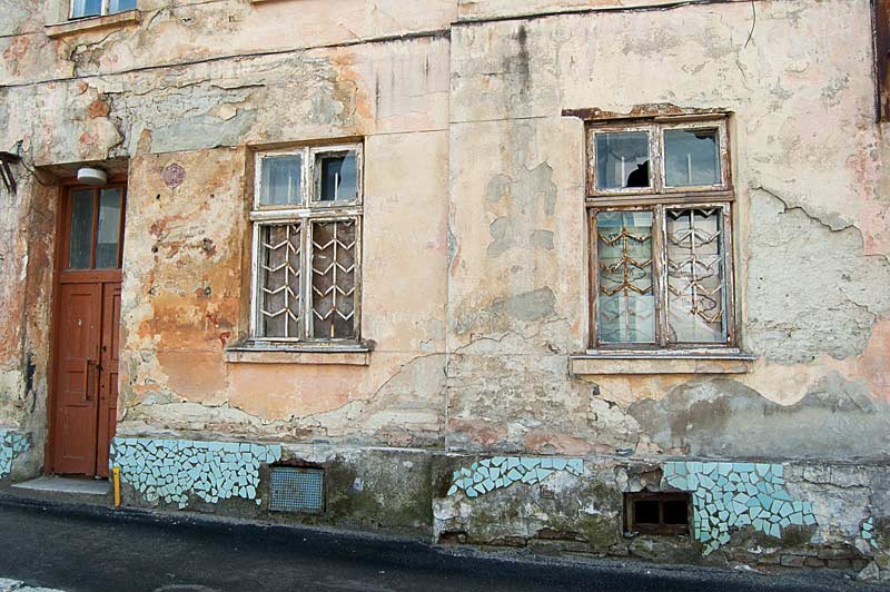 Штукатурка фасаду потроху відвалюється, і передня стіна вкривається великими негарними шрамами-тріщинами.