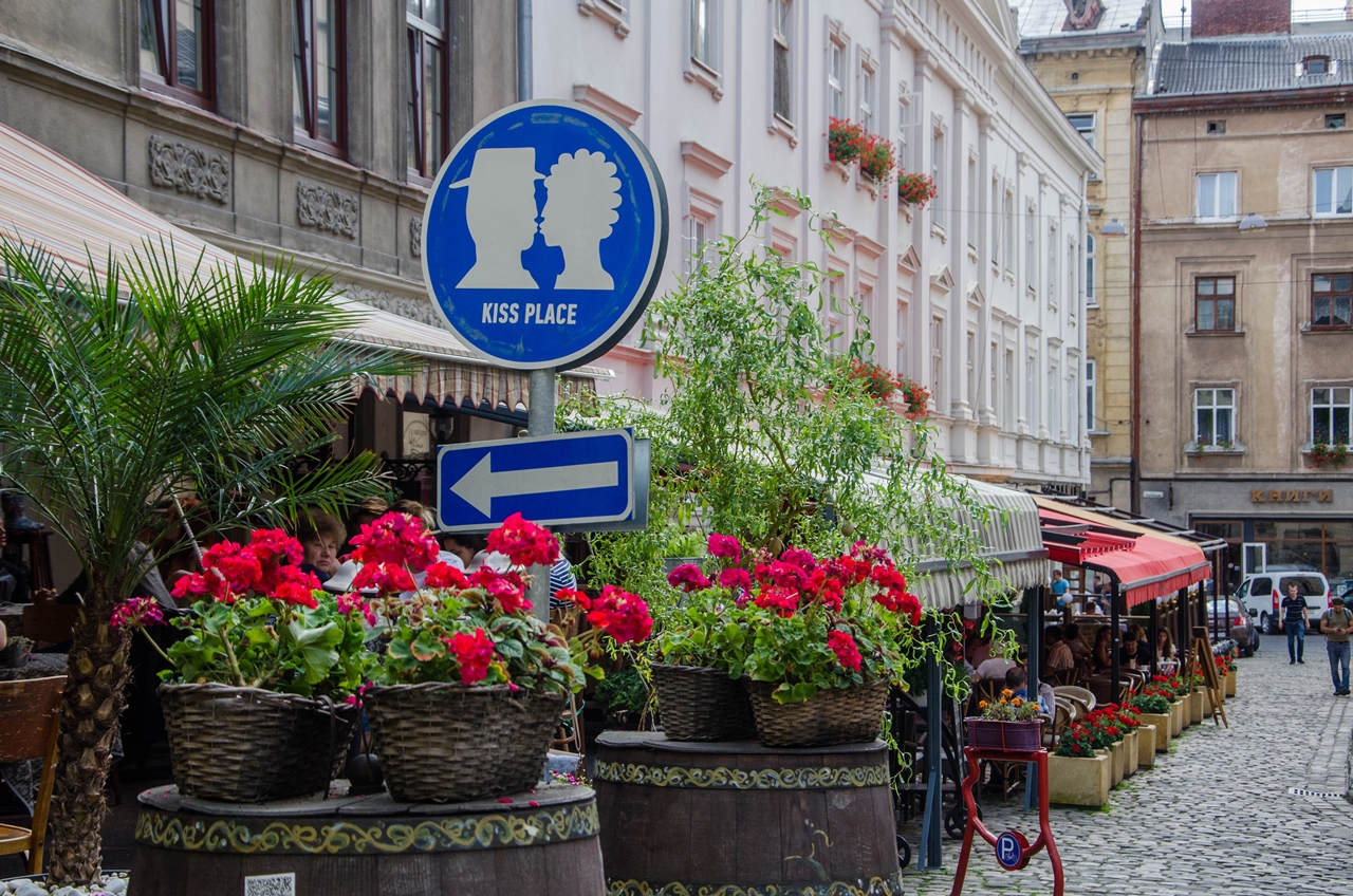 Романтичних місць у Львові немало, а для поцілунків є спеціально відведене. Його розташували на площі Катедральній поблизу оригінально облаштованої кав’ярні.