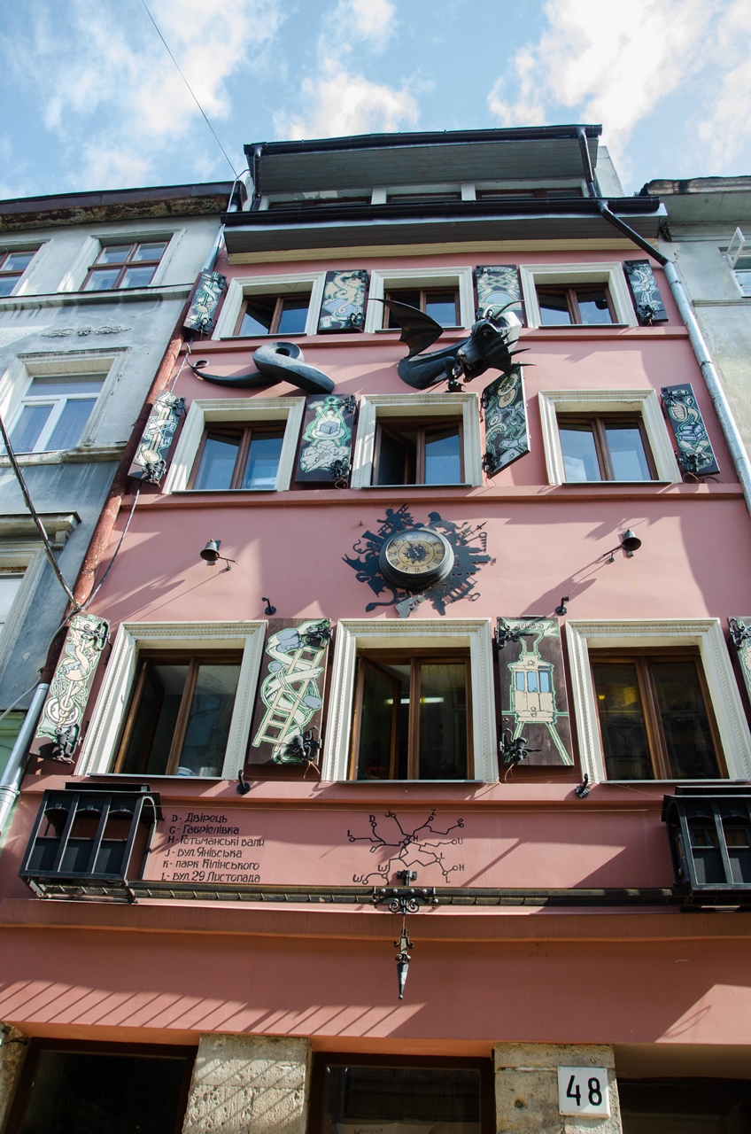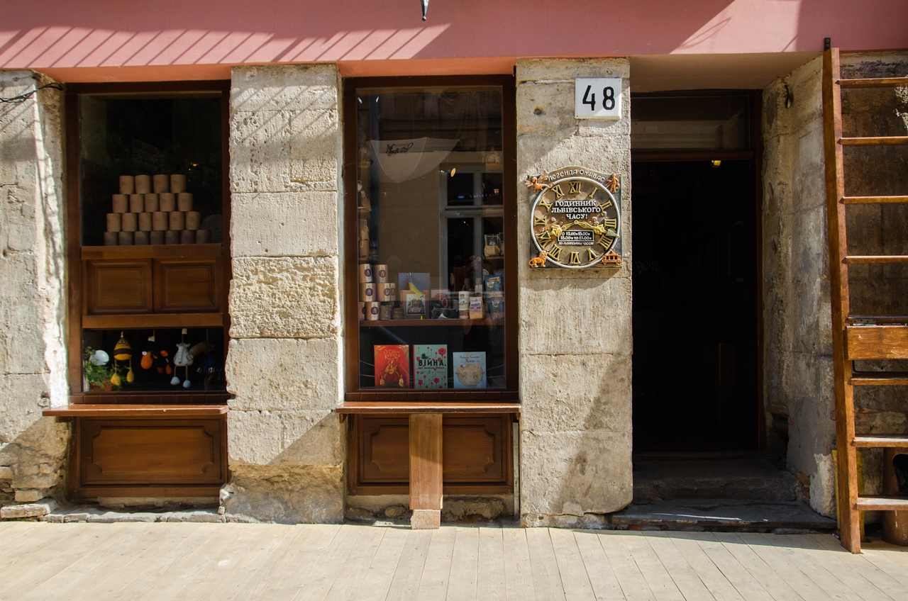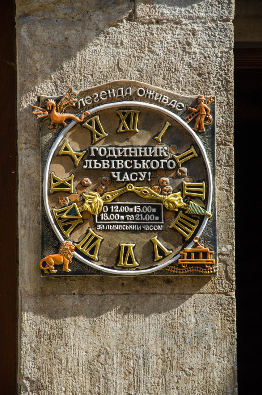 Годинник львівського часу (який відрізняється від київського на 24 хвилини), розташувався у кнайпі «Дім легенд».