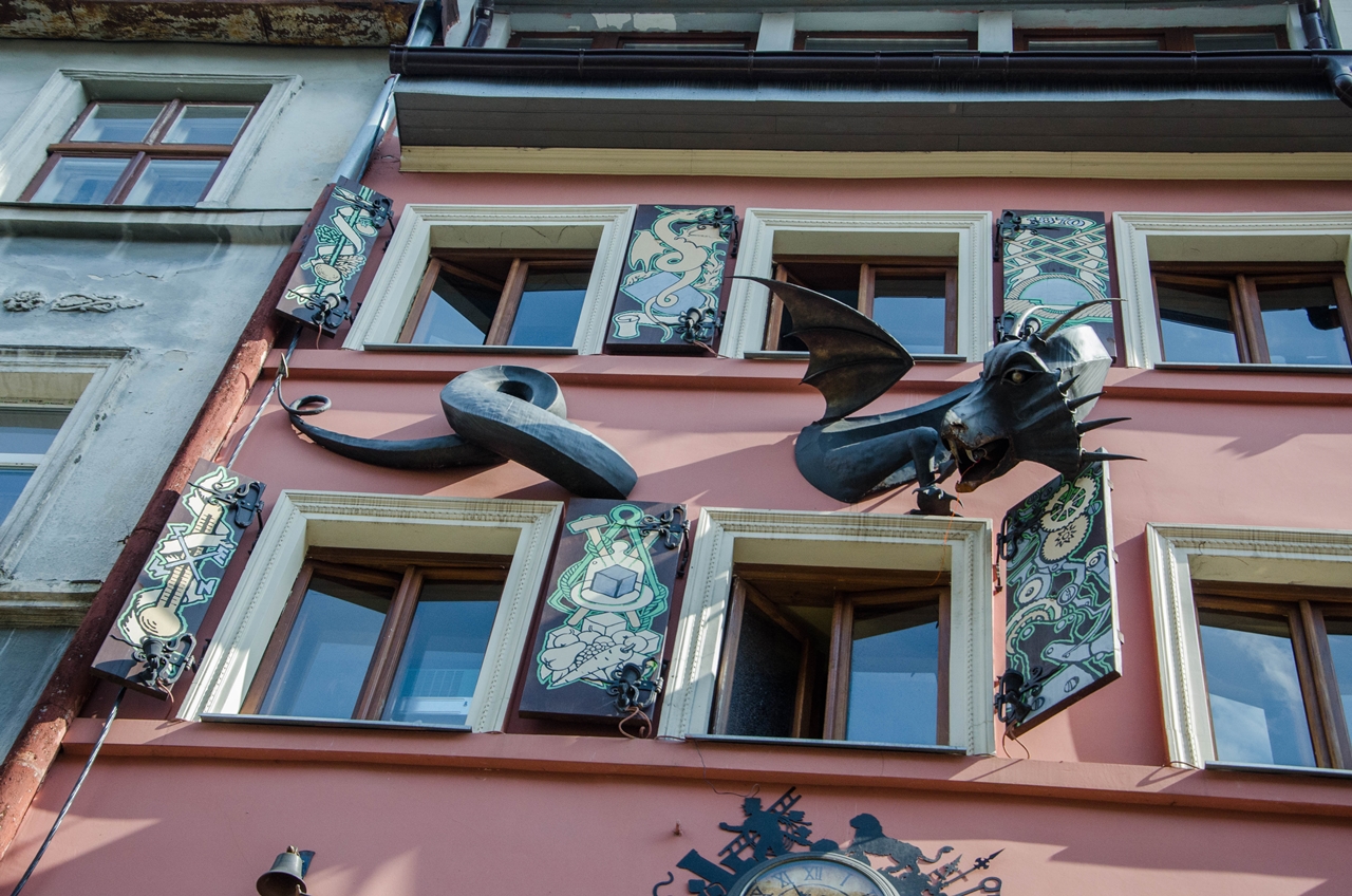Але цей дракон безпечний для всіх, вогонь же, який він пускає, можна побачити щодня о 21:24 на вулиці Староєврейській.
