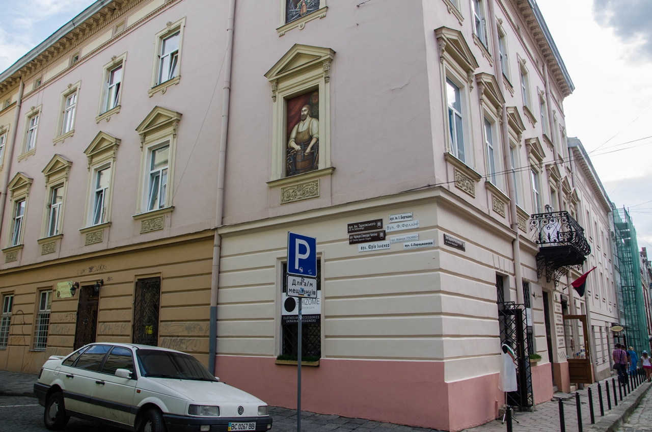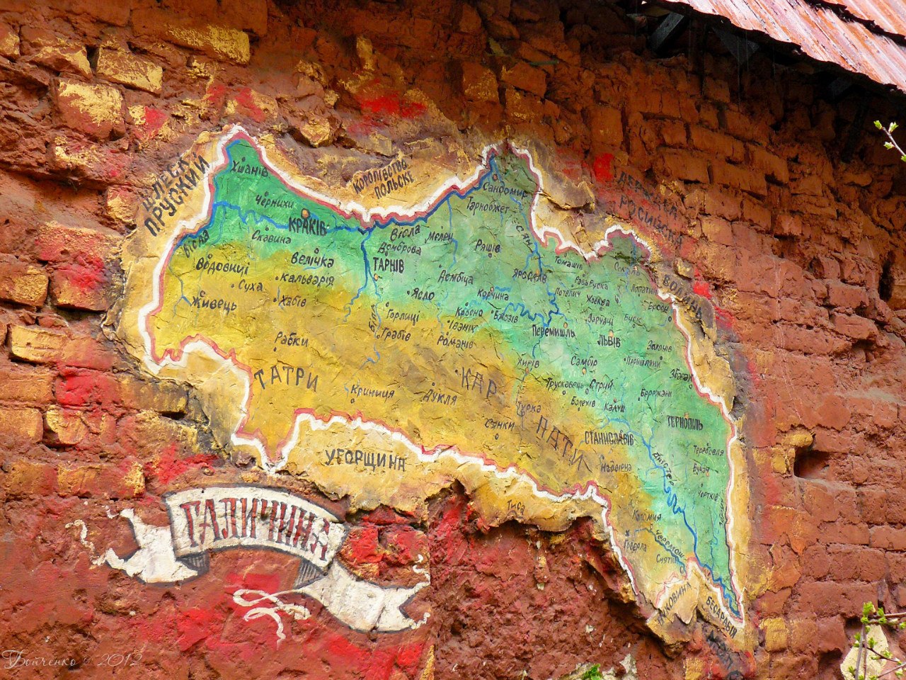 У провулку, який з’єднує площу Ринок та вулицю Староєврейську, на одній зі стін намальована мапа давньої Галичини. Влітку, коли дерева вкриті листям, її легко можна не помітити.