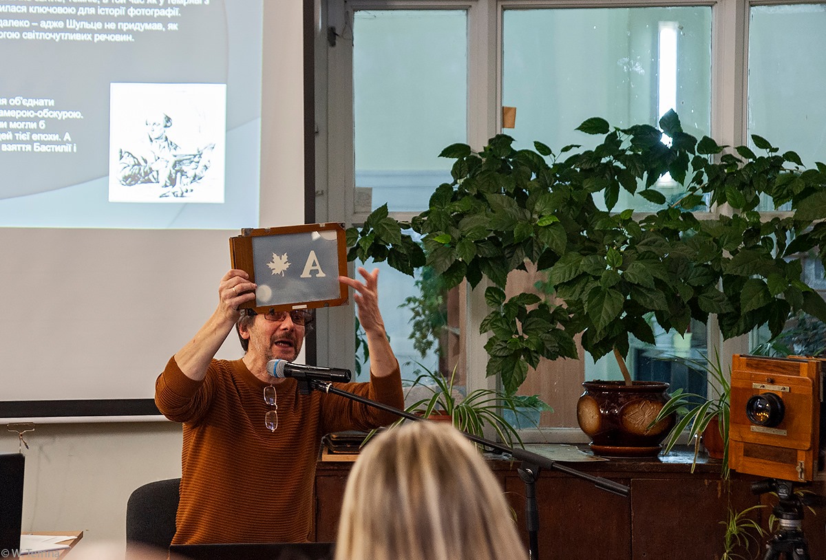 - Ігор Сальніков мав розповідь “Коротка історія розвитку фототехніки з демонстрацією деяких оптичних явищ, що лежать в основі фотографії”;
