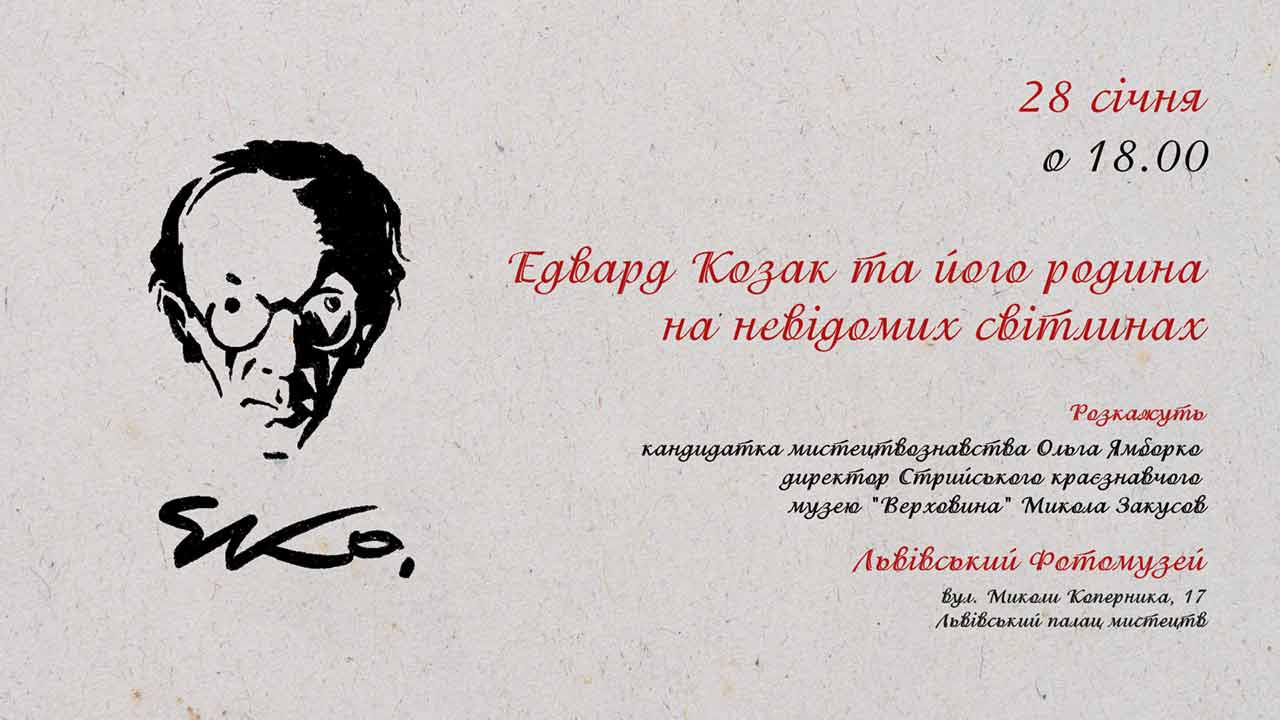 У вівторок, 28 січня 2025 року о 18.00, у Львівському Фотомузеї (Львівський палац мистецтв, вул. Коперника, 17) відбудеться лекція “Едвард Козак та його родина на невідомих світлинах”.