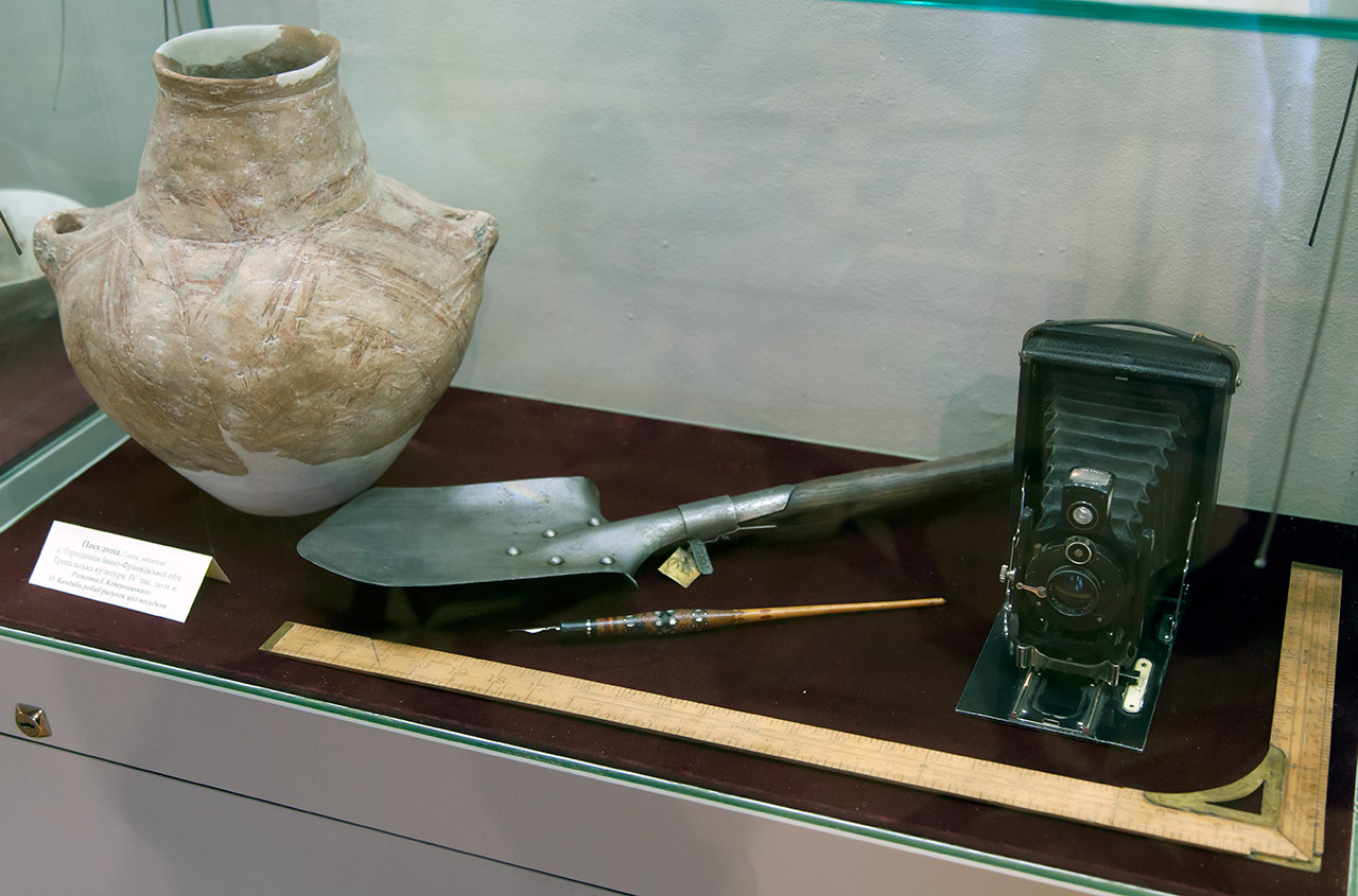В експозиції представлені збірки праць, рукописи та археологічні рисунки відомого вченого, а також знахідки з місцевостей, де Олег Кандиба проводив розкопки.