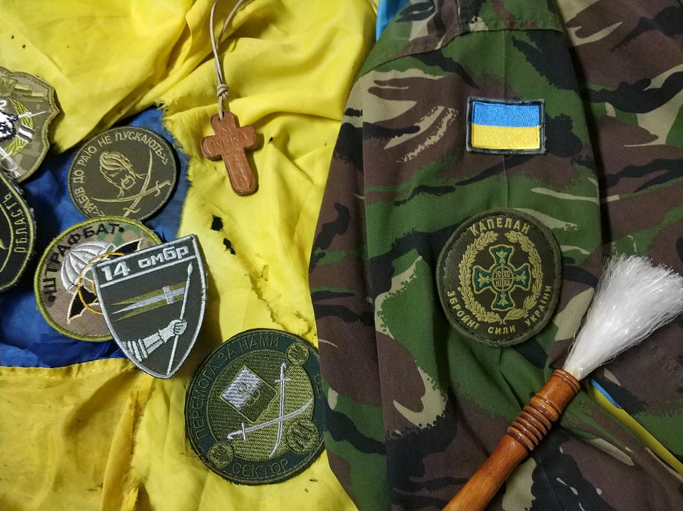 Доповнить виставку одяг капеланів: камуфльована куртка, єпитрахиль, хрест і кропило отця Михайла Білецького (настоятель військового храму Стрітення Господнього у Львові), камилавка отця Тараса Михальчука (військовий капелан Львівської Архиєпархії УГКЦ, душпастир Гарнізонного храму свв. апп. Петра і Павла), інших.