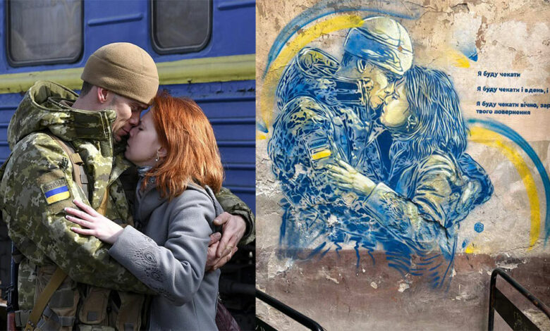 Відома світлина фотографа Associated Press Андрія Андрієнка, на якій зафіксовано зворушливий момент прощання прикордонника Віталія зі своєю коханою Альбіною на залізничному вокзалі Краматорська, продовжує надихати на творчість.