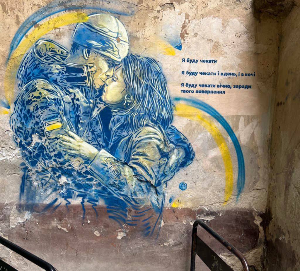 Нині мурал з цієї світлини є й у Львові. Його створив паризький вуличний художник Кристіан Гэмі, відомий як С215, який приїжджав в Україну. Також відомо, що він створив багато графіті в Бучі, Гостомелі та Києві.
