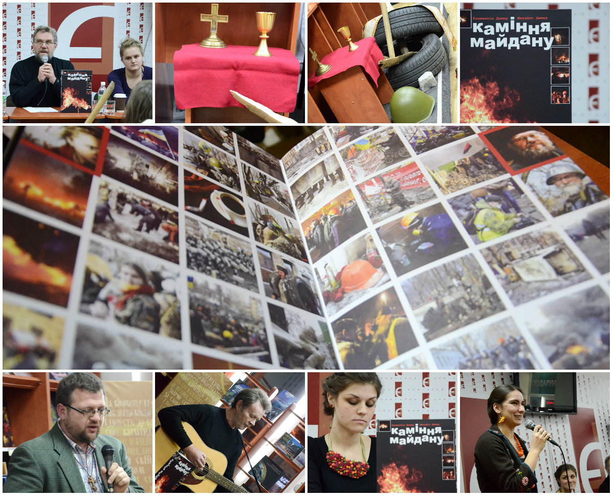 Вчора, 16 грудня, у книгарні «Є», що на проспекті Свободи, 7, відбулась презентація книги-альбому о. Михайла Димида та Климентії Димид під назвою «Каміння Майдану». Альбом, присвячений подіям Майдану Гідності, виданий 2014 року видавництвом «Свічадо» разом з Українським католицьким університетом.