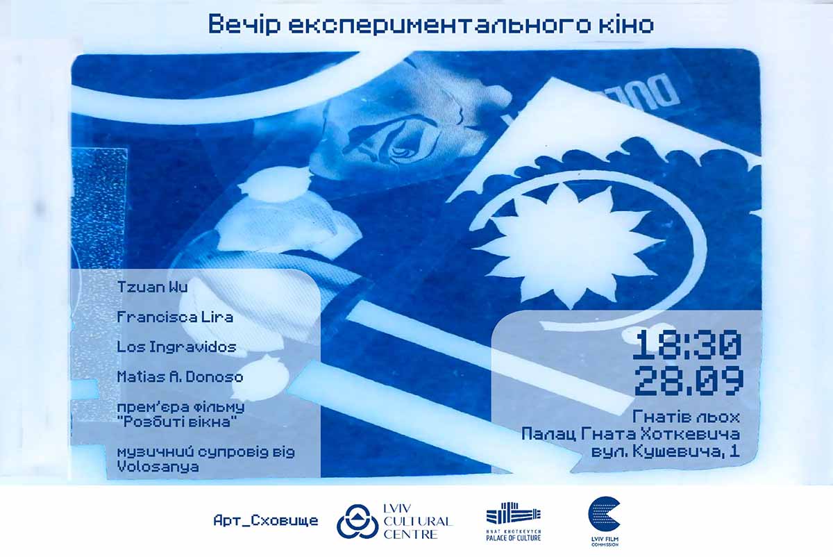 28 вересня о 18:30 в Палаці Хоткевича (вулиця Кушевича, 1) відбудеться вечір експериментального кіно, організований спільно Львівською кінокомісією та творчою ініціативою АртСховище. Показ відбуватиметься за участю іноземних гостей.