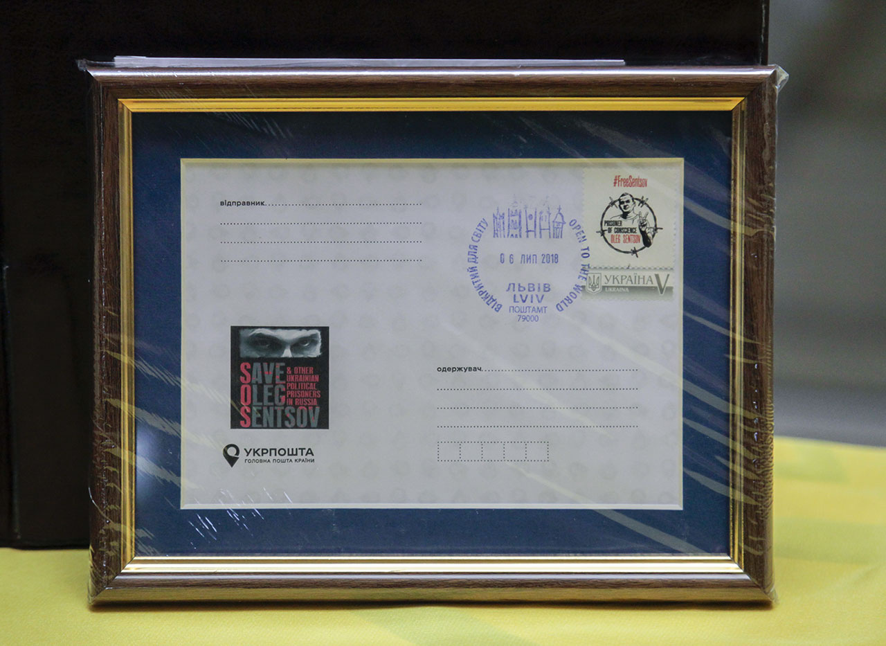 Вчора, 6 липня 2018 року, у приміщенні Головної пошти Львова (вул. Словацького, 1) відбулось спецпогашення марки, присвяченої звільненню із кремлівської тюрми Олега Сенцова.