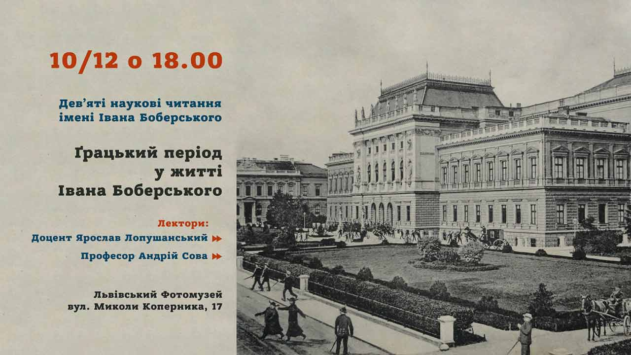 У вівторок, 10 грудня 2024 року о 18.00, у Львівському Фотомузеї (Львівський палац мистецтв, вул. Коперника, 17) відбудуться Дев’яті наукові читання імені Івана Боберського на тему «Ґрацький період у житті Івана Боберського».