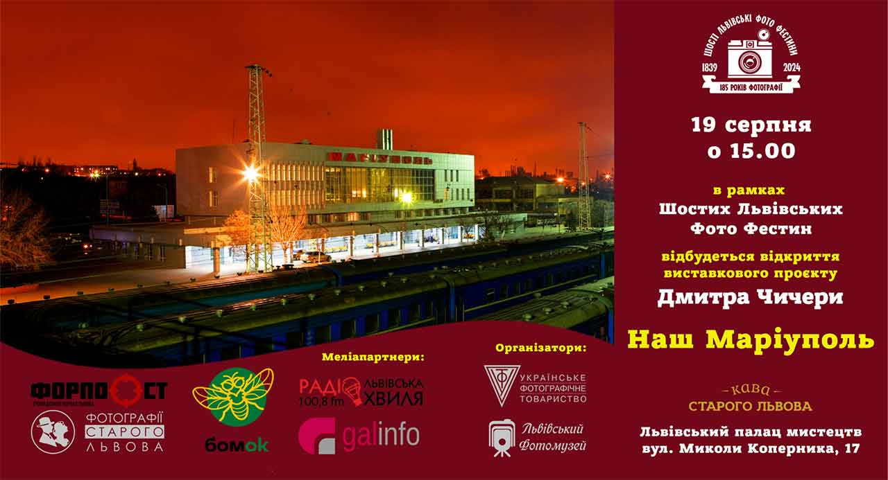 В понеділок, 19 серпня 2024 р. о 15 год., в рамках Шостих Львівських Фото Фестин, у Львівському палаці мистецтв (вул. М.Коперника, 17) відбудеться відкриття виставкового проєкту Дмитра Чичери “Наш Маріуполь”.