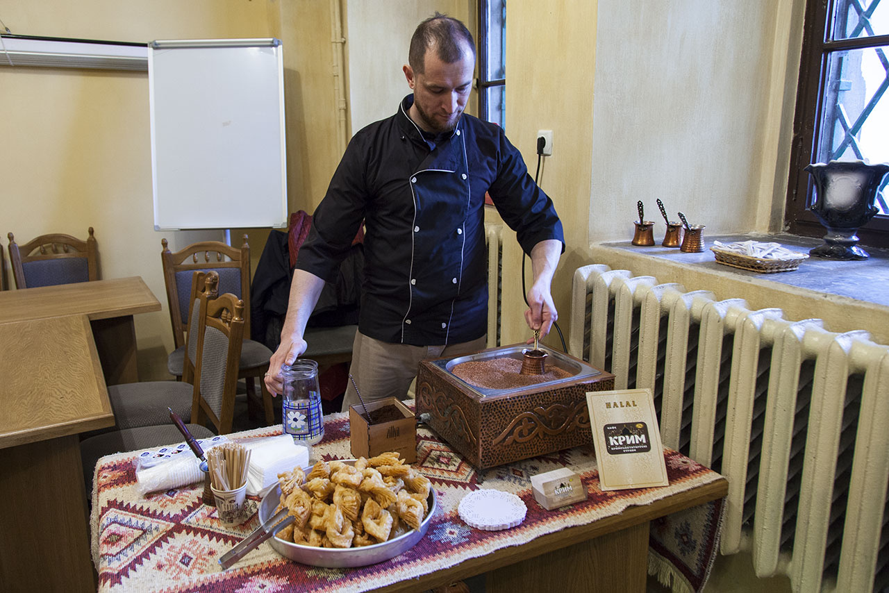 Гості відкриття мали можливість не тільки побачити фотографії, почути кримськотатарську музику, скуштувати автентичні національні смаколики, але й взяти участь у віртуальній екскурсії по Бахчисарайському палацу, яку провів для присутніх Амет Бекіров – екскурсовод, що багато років працювала у палаці.