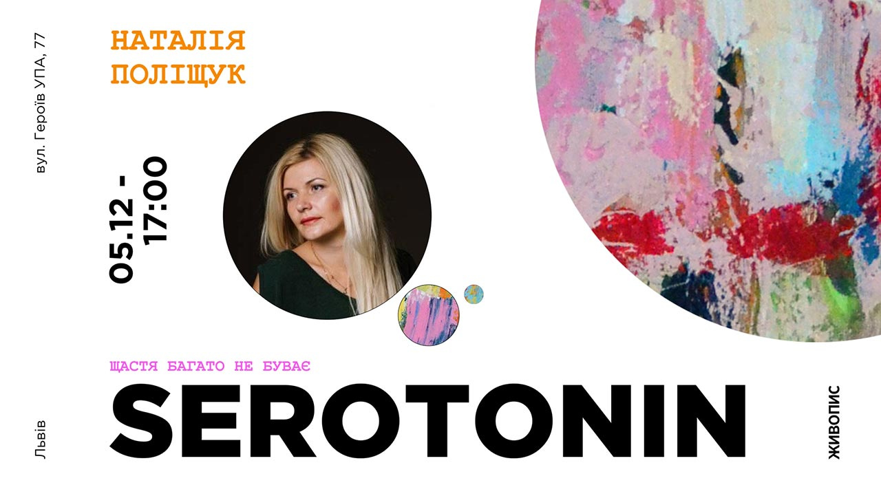 Вже сьогодні, 5 грудня 2019 року, о 17:00 у Proart Gallery (вул. Героїв УПА, 77) відбудеться відкриття виставки живопису «Serotonin. Щастя багато не буває» Наталії Поліщук та аукціон робіт художниці на підтримку Павлика Могили.