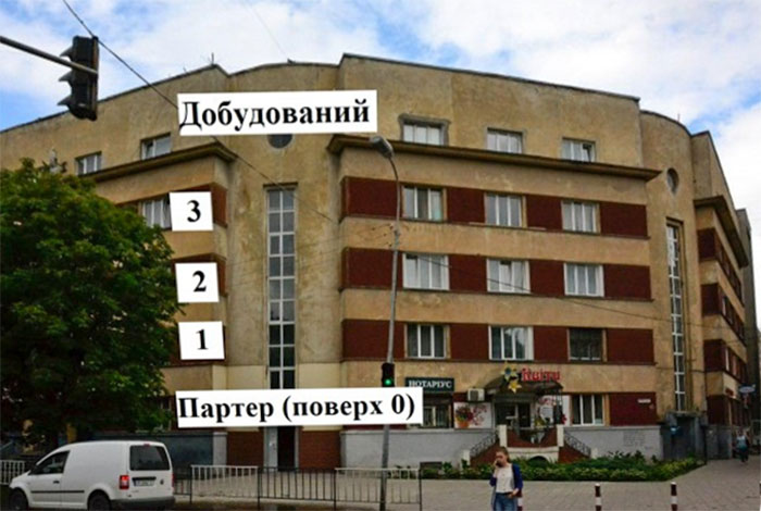 Як бачимо, будинок не 3-поверховим, однак, по-перше, у європейській традиції звичний для нас перший поверх вважався нульовим, а, по-друге, останній поверх даного будинку явно був добудований уже після війни, тож це саме та будівля, про яку писав Хіґер.