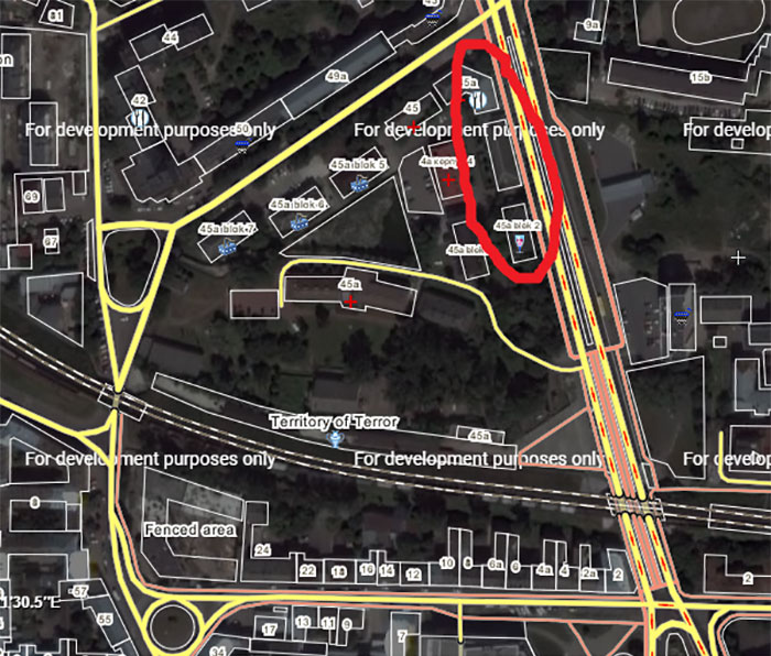 … і бачимо, що отвір знаходиться орієнтовно на рівні будинку за адресою просп. Чорновола, 45, корпус 1.