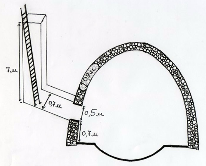 Отвір був замурований дуже неакуратно, на відміну від інших заглушок, які доводилося бачити у Полтві. Діаметр отвора дорівнює 50 см.