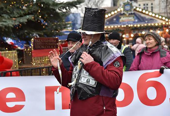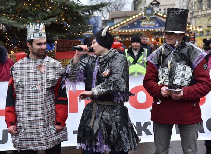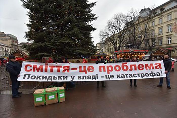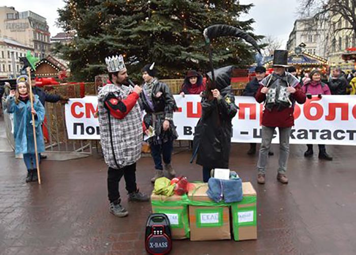 Перед початком дійства активісти розгорнули великий банер із написом: «Сміття – це проблема. Покидьки у владі – це катастрофа!». Після цього учасники вертепу розпочали театралізовану еко-виставу.