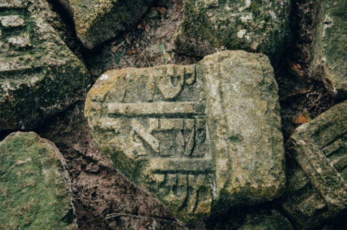 Це єврейські надгробки, які упродовж останніх років знаходили по всьому місту. Небайдужі та волонтери їх звозили у двір позаду пологового будинку на вул. Я. Раппопорта.