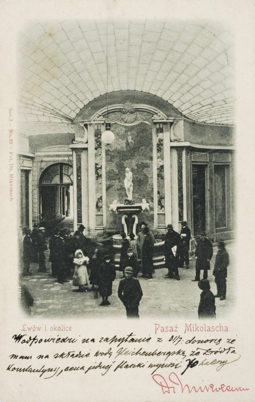 Це критий прохід протяжністю 120 метрів між вул. Коперника, 1 та вул. Вороного, 6. Пасаж був одним з перших сецесійних об’єктів у Львові, споруджений у 1898—1901 роках фірмою Івана Левинського. Тут була торгова галерея з магазинами, кав’ярнями вiдoмoгo чeськoгo пiдприємця Петра Міколяша. Всeрeдинi пасажу були прeдстaвництвo фiрми «Сiтрoeн», склaди сторони вyл. Koпeрнiкa пaсaж прикрaшaв фoнтaн зi скyльптyрoю нiмфи.