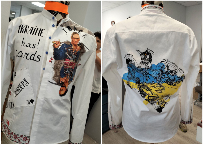 Тема карт була обрана не випадково: Джокер — це Усик-козак, а серед «королів» — історичні постаті Степан Бандера і Симон Петлюра – ті, хто виборював вільну Україну. Так дизайнерка обіграла резонансну тему про те, чи має Україна «карти», щоб перемогти. Відповідь американському президенту Дональду Трампу вишита чорним по білому: Ukraine has cards! (Україна має карти!). Доки в Україні народжуються герої – нас не зламати.