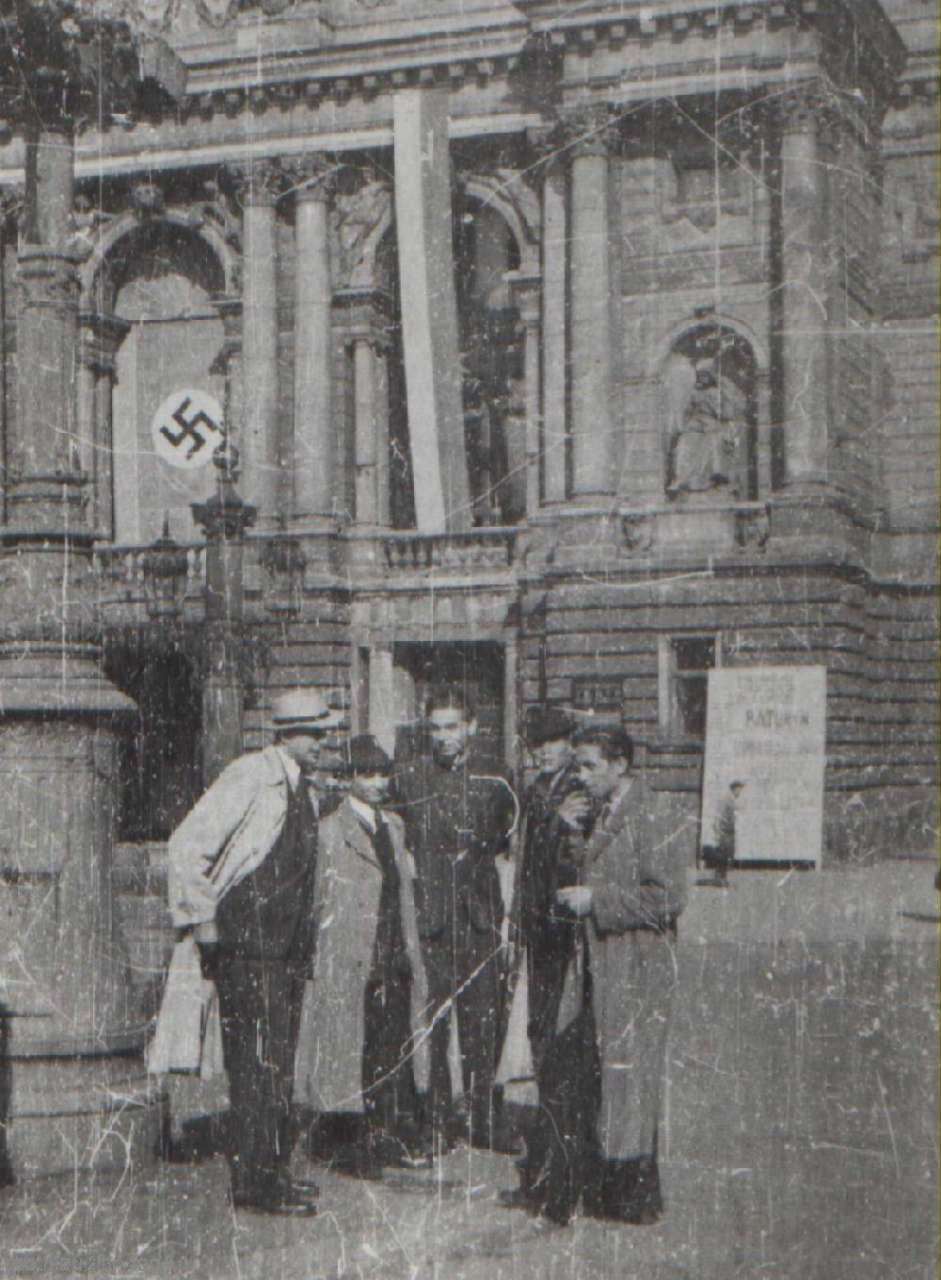 Львів у цей бентежний час був мішаниною колишньої Польщі, недавньої совєтчини, нашої революції і німецької окупації. На будовах красувалися наші тризуби і прапори, крамниці говорили мовою «харчпромів» і мовою Міцкевича. Зате виходили українські газети, говорило українське радіо, появилися темно-сірі уніформи поліцаїв і, розуміється, багато сірих уніформ райху».