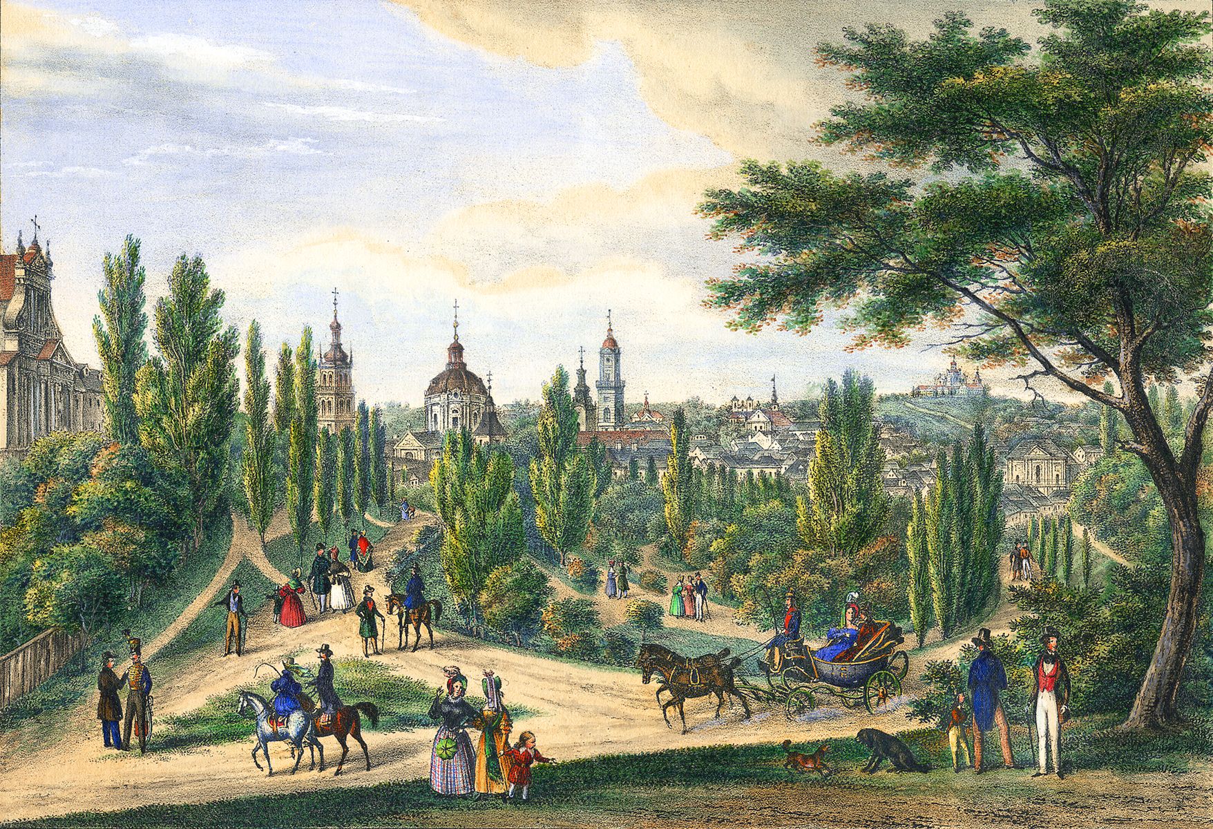 Наступне місце, варте нашої уваги, має багато спільного з Райценгеймівкою. По перше, його було закладено практично в той же час, а точніше в 1823 році, але, не як сквер, а як перший ботанічний сад в нашому місті. По-друге, як і з Райценгеймівкою, цей ботанічний сад обновлювався Каролем Бауером, правда аж в 1890 році. Якщо ви ще не здогадались, то мова йде про міську Стрільницю, що знаходилася на вулиці Лисенка. І хоч вона була у відомстві Стрілецького товариства, ходити сюди на прогулянки могли усі охочі львів’яни. У вихідні дні тут часто відбувались різні атракції, одну із яких зобразив на своїй літографії Карл Ауер.