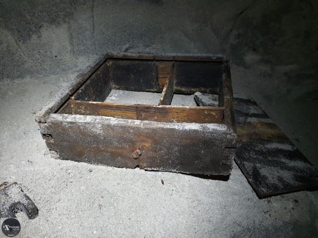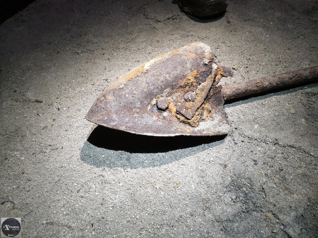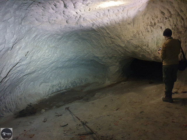Знайти криївку було не просто. Навколо складна місцевість зі значними перепадами висот та одноманітні дерева. Якби по нас ще й звідкись стріляли, то ми б давно вже відрапортували в Москву що повстанців тут немає 🙂 Хоча насправді заховався цілий підземний бункер. П’ять кімнат, коридори, вентиляційні отвори, колодязь для питтєвої води і, звісно що, кілька виходів назовні. На підлозі є залишки дерев’яних бочок, шухляд, батарея від радіостанції, інструмент яким довбали цю криївку. Сміття та надписи на стінах відсутні.